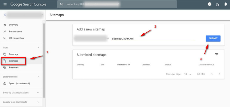 - Bước 3: Trong menu bên trái, chọn “Sitemaps”.