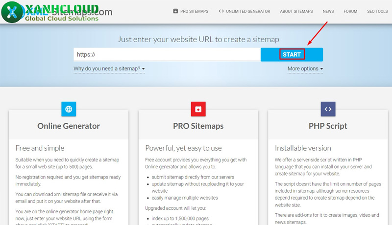 Bước 1: Truy cập trang web: https://www.xml-sitemaps.com/